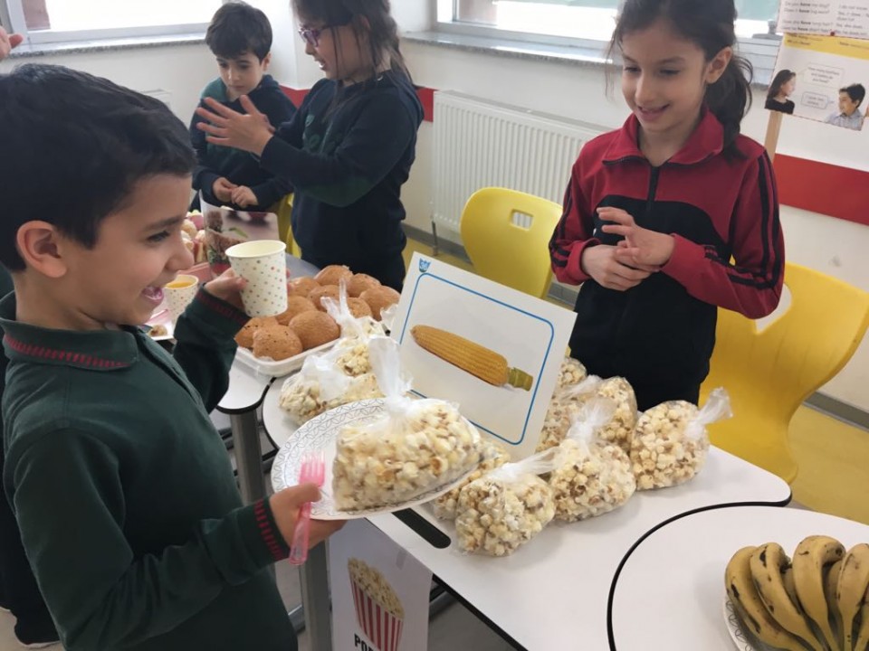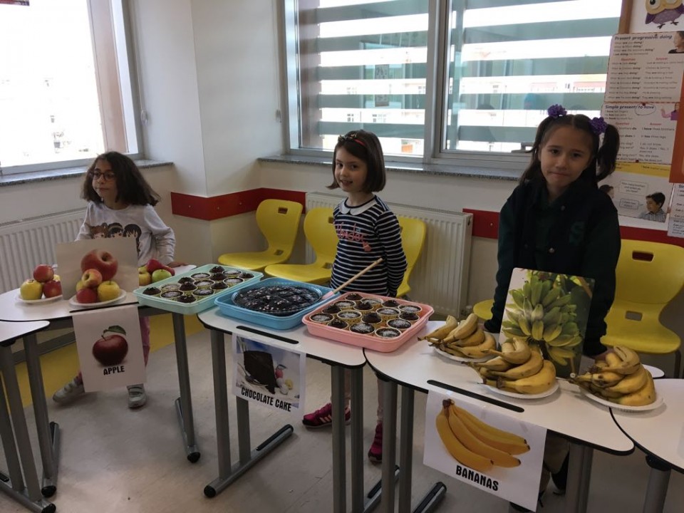 Her dil kullanıldığında anlam kazandığından, biz de ikinci sınıflar ile yiyecek – içecek ünitemiz kapsamında öğrendiklerimizi gerçek hayata aktardık. Sınıf içinde yapmış olduğumuz ufak bir kermes ile çocuklarımız hem iletişim becerilerini geliştirdiler hem de yaşayarak öğrenme tekniği ile bilgilerini kalıcı hale getirdiler.